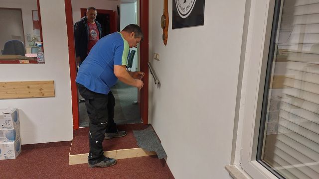 | In der Kegelbahn wird der Eingang zu den Bahnen umgebaut. |