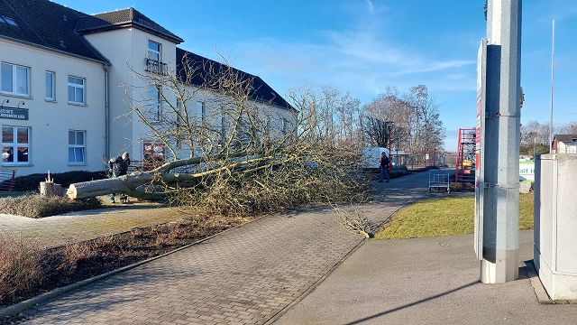 | Auch die letzte Kastanie auf der Terrasse fällt. |