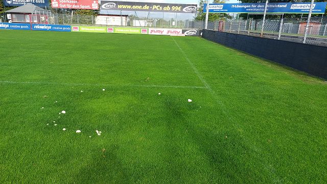 | Ein seltenes Insekt in der Arena! Eine Gottesanbeterin. Die NABU Thüringen dazu: Dieses ursprünglich aus Afrika stammende Insekt, mit seinen imposanten Fangarmen, fühlt sich in sonnigen, trockenwarmen, meist in Südlage gelegenen Gras- und Buschlandschaften, Halbtrockenrasen und Ruderalflächen mit lockerer Vegetation wohl. Wir gehen davon aus, dass sich Gottesanbeterinnen mittlerweile in Thüringen angesiedelt haben.“ |