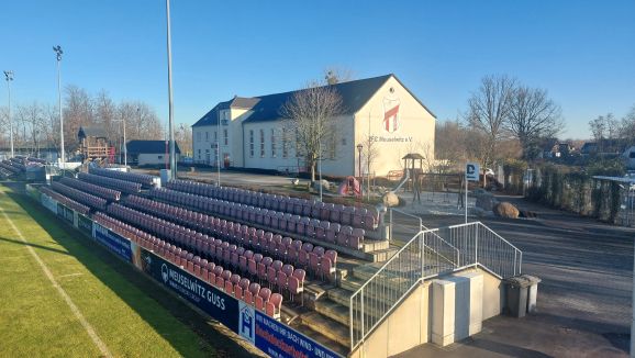 Trainingsplatz bekommt auf die Nordseite die alte Tribünenanlage. Das