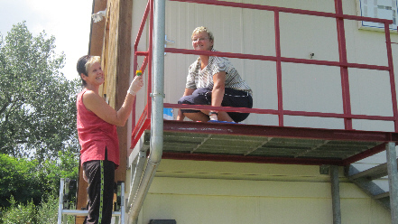 | Die Westseite des Hauptgebäudes (Wetterseite) erhält einen neuen Anstrich. | |