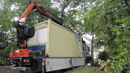 Eine tolle Leistung vom LKW-Fahrer! Die Rückwärtige Fahrt zwischen den Bäumen zum Stellplatz. |